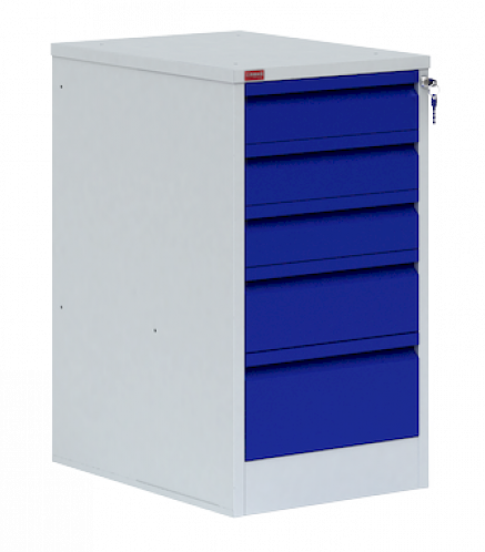 Тумба состоит из 5-ти выдвижных ящиков, запирающихся на общий замок. Нагрузка на ящик 30 кг.