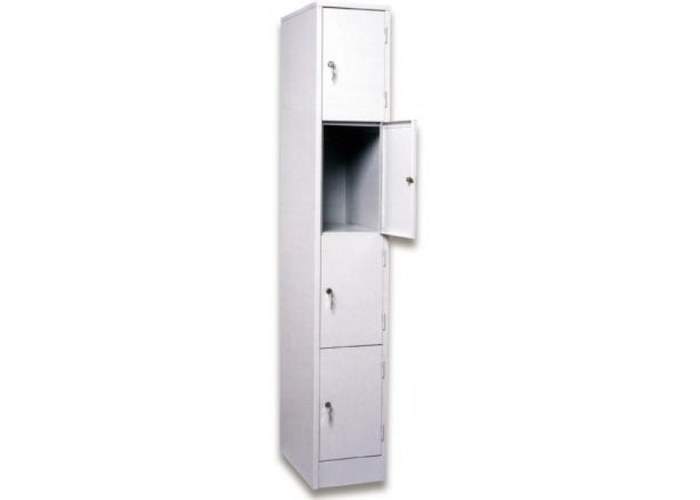 Односекционный металлический шкаф для сумок разборный, с четырьмя отделениями. Шкафы ШРМ - 14 используются для хранения сумок, пакетов, а также сменной одежды.