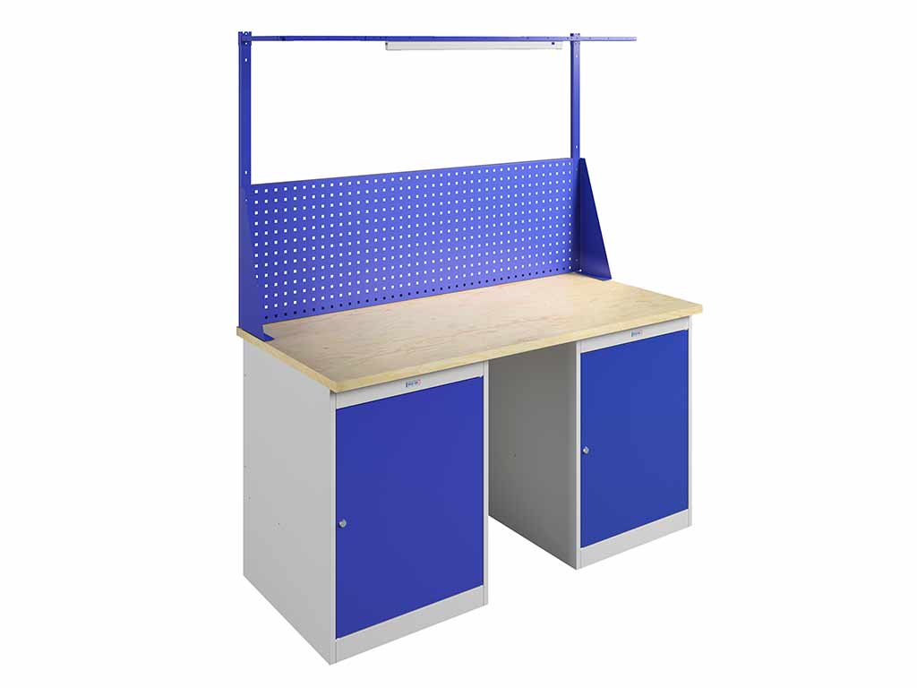 дополнительно верстак можно укомплектовать перфорированным экраном соответствующего размера, светодиодным освещением и аксессуарами для инструментов.