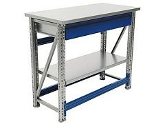 Возможность дополнить верстак полкой (нагрузка 100 кг) и выдвижным ящиком (нагрузка 30 кг).